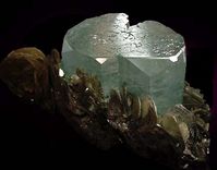 Аквамарин - это голубой или зеленовато-голубой прозрачный берилл цвета морской воды (от латинского "аква" - вода, "маре" - море). Слабый зеленоватый оттенок присущ минералу почти всегда, особенно в сопоставлении с голубым и синим сапфиром. Очень хорошо об аквамарине сказал К. Паустовский в повести "Золотая роза": "Цвет его нельзя точно определить. Для него еще не нашли подходящего слова... В прозрачной его глубине есть оттенки мягкого зеленоватого цвета и бледной синевы. Но все своеобразие аквамарина заключается в том, что он ярко освещен изнутри совершенно серебряным (именно серебряным, а не белым) огнем. Кажется, что если вглядеться в аквамарин, то увидишь тихое море с водой цвета звезд".В старину полагали, что это талисман верной дружбы и мудрости, рассудительности и красноречия. Это камень весны - времени объяснения в любви и осени - времени свадеб, когда красноречие играет немаловажную роль. Он охлаждает страсти, успокаивает бури (надо думать, и в семейной жизни), обеспечивает безопасность на воде и в морских баталиях. Не случайно, крупный (920 карат), прекрасно ограненный аквамарин находится в королевской короне Великобритании - "владычицы морей". Аквамарин - талисман моряков, путешественников и всех странствующих. С глубокой древности он - излюбленный камень для производства гемм. На них чаще всего вырезали морские сюжеты, изображения Нептуна, Тритона. У уральских горняков это камень радости и счастья, способствующий долголетию и избавляющий от тоски; по традиции его подносили на свадьбе молодым.